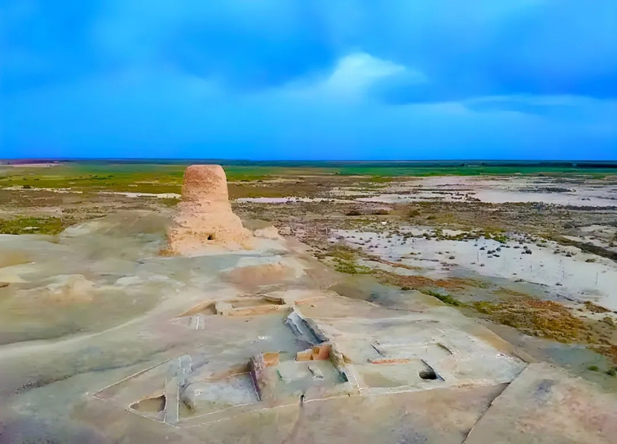 莫爾寺遺址發(fā)掘現(xiàn)場:遠(yuǎn)處為圓形塔,近處為大佛殿和僧舍建筑基址。
