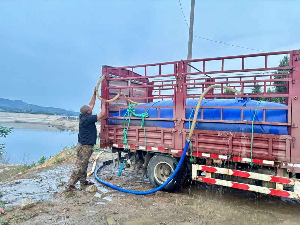 2024年6月11日,山東省臨沂市蒙陰縣野店鎮(zhèn),村民從水庫(kù)中抽水后前往果園灌溉。新華社記者高天 攝