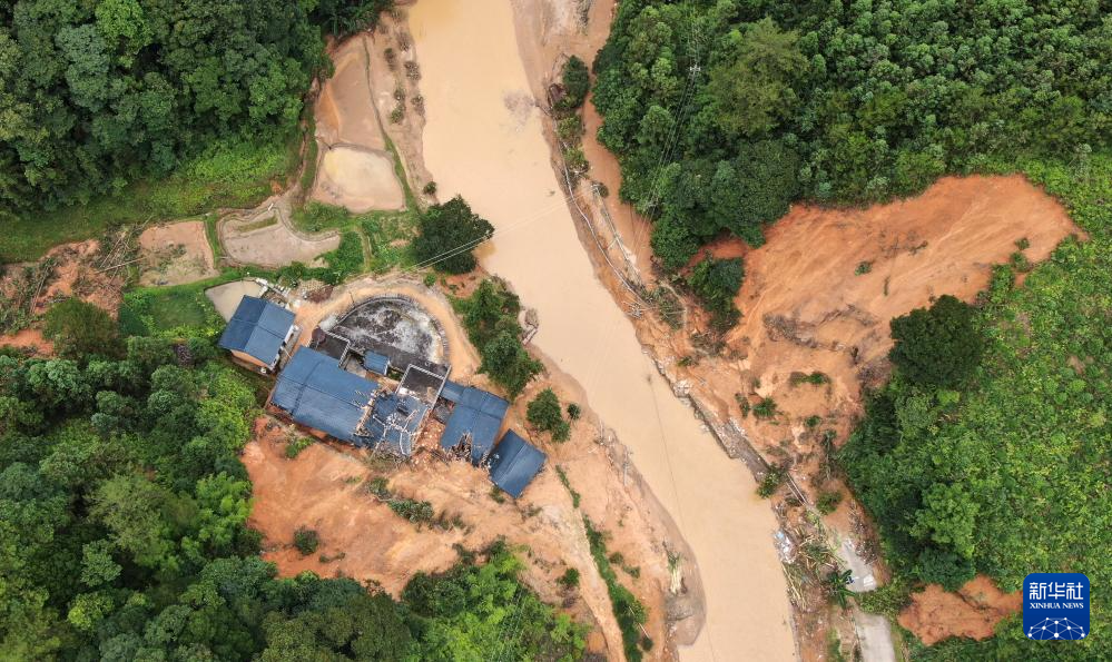 災(zāi)后的廣東省梅州市平遠(yuǎn)縣泗水鎮(zhèn)大新村(6月19日攝,無人機照片)。新華社記者 盧漢欣 攝
