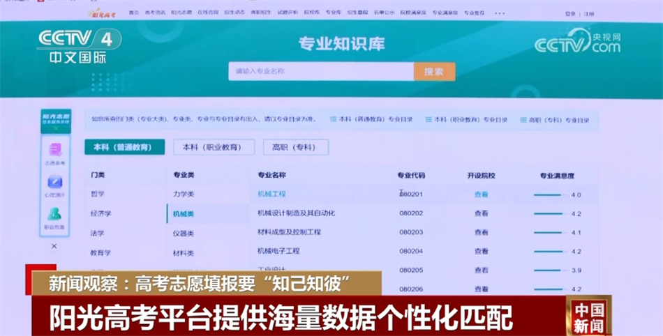 今年,教育部首次在“陽光高考平臺”推出免費的陽光志愿信息服務(wù)系統(tǒng),將海量數(shù)據(jù)系統(tǒng)集成,進行個性化匹配推薦,多方面幫助考生了解學(xué)校和專業(yè);同時還將舉辦“高考志愿填報云咨詢周”活動,組織各省級招生考試機構(gòu)和高校通過文字問答、視頻直播等方式,為全國考生和家長提供志愿填報咨詢指導(dǎo)公益服務(wù)。