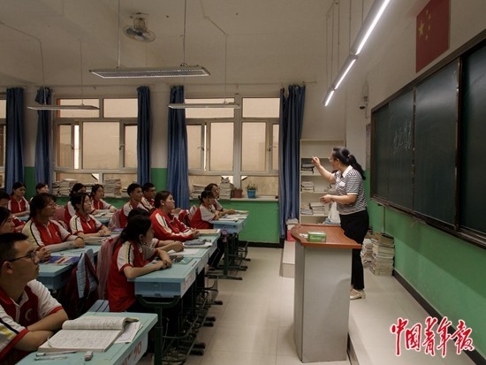 今年高考前夕,侯朝茹在高三課堂上,窗外黃沙漫天。中青報(bào)·中青網(wǎng)記者 杜佳冰/攝