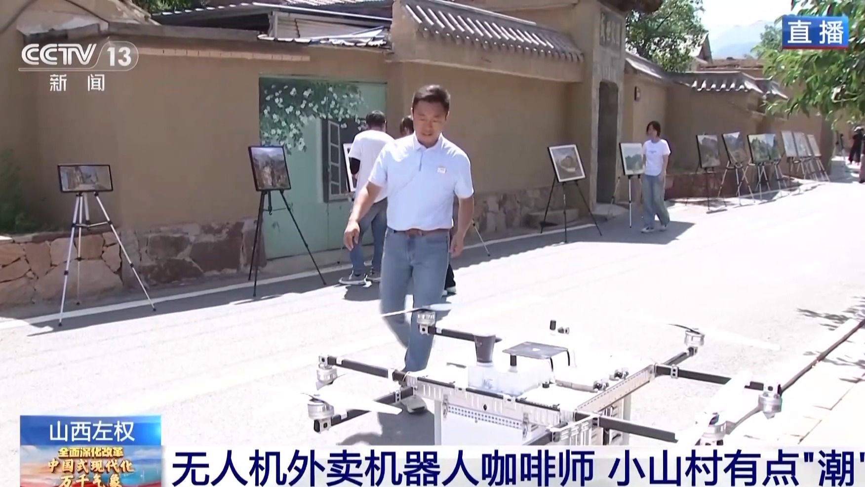 隨著前來寫生的人越來越多,澤城村的“賣點”逐漸多了起來。小小的一杯咖啡在城市里不足為奇,但是在這里我要通過這杯咖啡介紹兩個特點。第一點,這杯咖啡不是我從店里自取,也不是外賣小哥送過來的,而是在直播前我通過由村民操控的這架無人機收取的,這個無人機可攜帶10公斤貨物送達10公里外的顧客手中。但是無人機外賣只是它其中一項業(yè)務(wù),如果村里急需醫(yī)療物資或者在災(zāi)害環(huán)境中運送緊急物資,它都是一把好手。