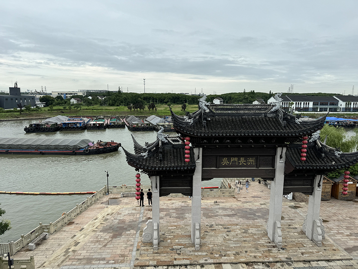 行走在運(yùn)河公園,亭、臺、樓、閣錯落有致,碑、牌、匾、聯(lián)引人思緒。登望運(yùn)閣極目遠(yuǎn)眺,河面上舟楫如織。作為大運(yùn)河最繁忙的河段之一,每天,有數(shù)千條貨船從這里穿行,他們在“吳門長洲”的石坊前劃過的一瞬間,仿佛古今同框,一眼千年。