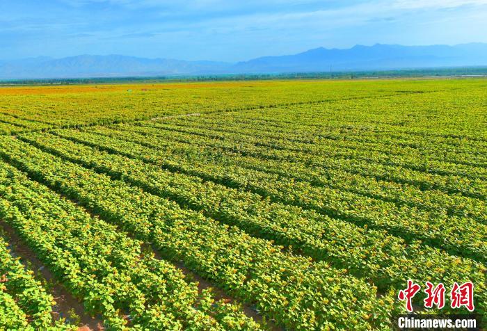 7月2日,走進新疆鐵門關(guān)市二十一團,一眼望不到邊的向日葵正大面積綻放,構(gòu)成一幅美麗的壯觀畫卷。白克斌 攝