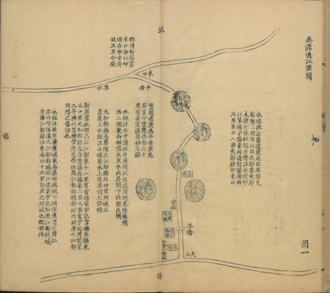 《邗溝故道歷代變遷圖說》(清)徐庭曾撰清光緒三十年(1904)刻本一書,曾以地圖的形式展示了邗溝故道以及歷史上的七次變遷。八幅運(yùn)河圖,圖版詳實(shí),文字簡(jiǎn)明,還標(biāo)注出了水道的變化。