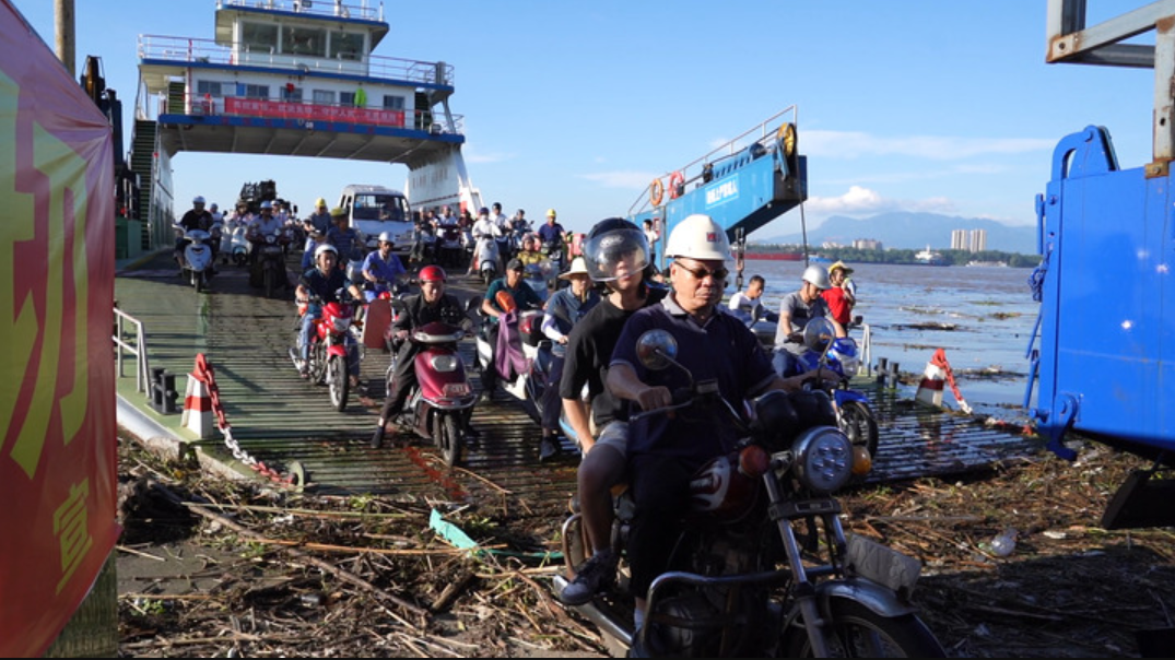 7月3日開始往來于江西九江市區(qū)與江新洲的渡輪比以往繁忙得多隨機詢問乘坐輪渡的人十有八九會回答“我回家防汛去!”