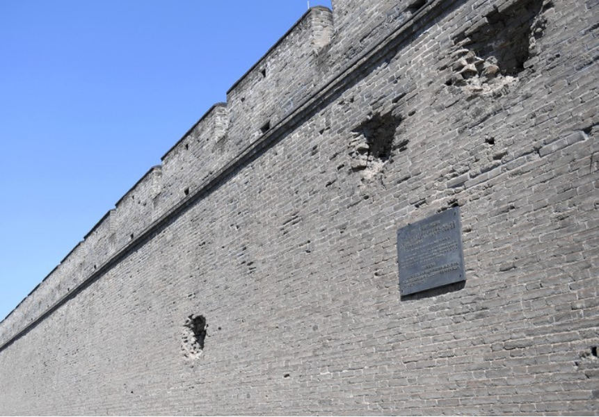 宛平城城墻上的“七七事變”彈坑遺址。新華社記者 張晨霖 攝