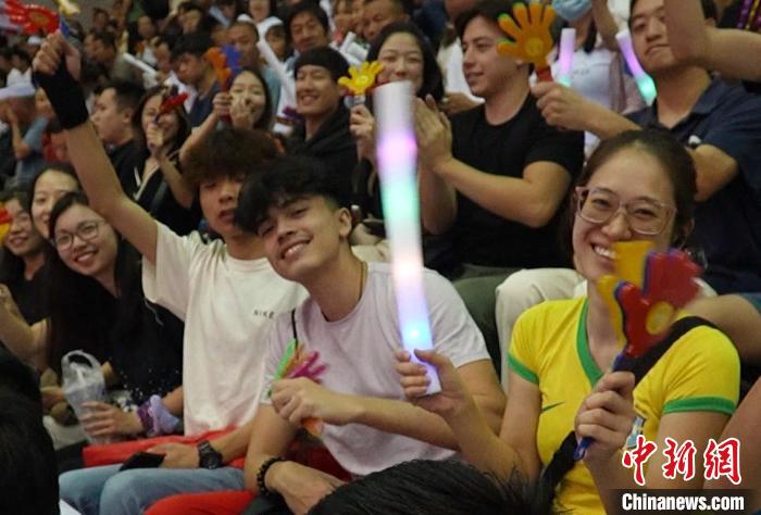 賽場上,球員們?nèi)Ρ寂?、激烈對抗,精彩的進球引來觀眾陣陣歡呼。海外臺青也沉浸其中,目不轉(zhuǎn)睛地盯著賽場,和身邊的伙伴們討論著喜愛的球員?!拔覍侵夜懦擎?zhèn)隊印象最深刻,尤其是6號選手,他的投籃非常精準。”首次來到大陸的海外臺青李文陽說。