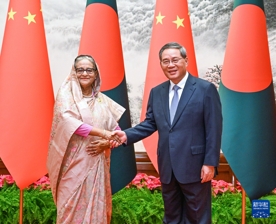 7月10日上午,國(guó)務(wù)院總理李強(qiáng)在北京人民大會(huì)堂同來(lái)華進(jìn)行正式訪問(wèn)的孟加拉國(guó)總理哈西娜舉行會(huì)談。新華社記者 饒愛(ài)民 攝