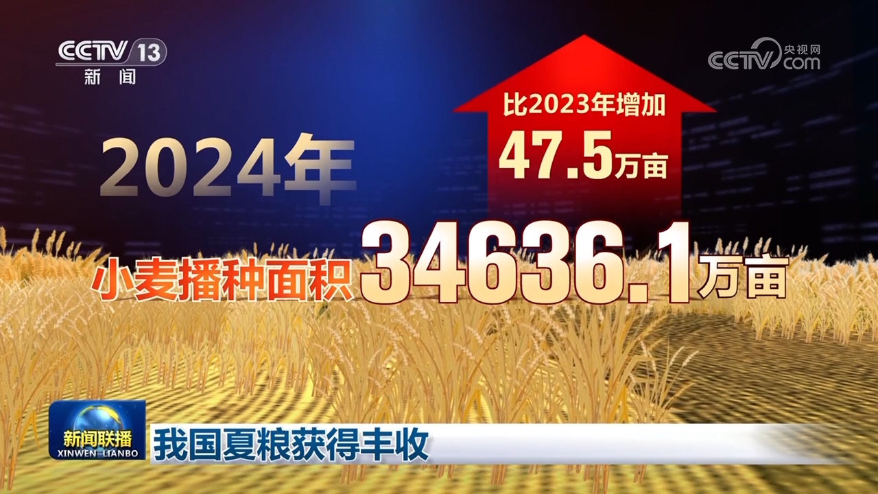 夏糧播種面積保持穩(wěn)定。2024年,夏糧播種面積為39920萬(wàn)畝,其中,小麥播種面積34636.1萬(wàn)畝,比2023年增加47.5萬(wàn)畝。