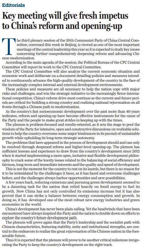 原文標(biāo)題:Key meeting will give fresh impetus to China's reform and opening-up