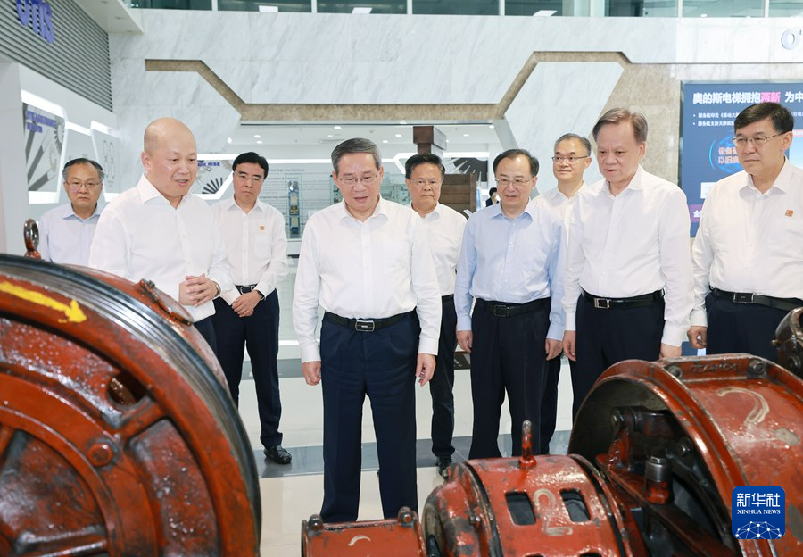 7月22日,中共中央政治局常委、國務(wù)院總理李強(qiáng)在天津調(diào)研。這是李強(qiáng)在位于濱海新區(qū)的奧的斯電梯(中國)有限公司了解企業(yè)研發(fā)情況。新華社記者 王曄 攝