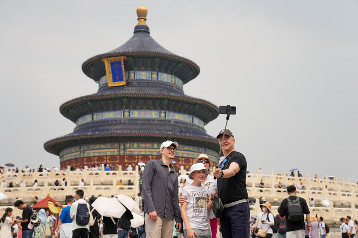 晴朗的夏日,天壇公園祈年殿前,游人熙熙攘攘。近年來,經(jīng)過騰退保護,天壇的歷史風(fēng)貌得到極大的恢復(fù),這座中國現(xiàn)存規(guī)模最大、保存最為完整的明清皇家祭天建筑群煥發(fā)出新的時代光彩。