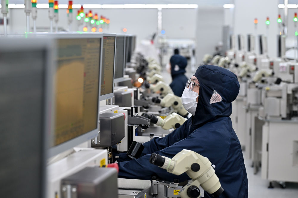 7月26日,湖南越摩先進半導體有限公司工作人員調(diào)試引線鍵合設(shè)備。新華社記者 李鑫 攝