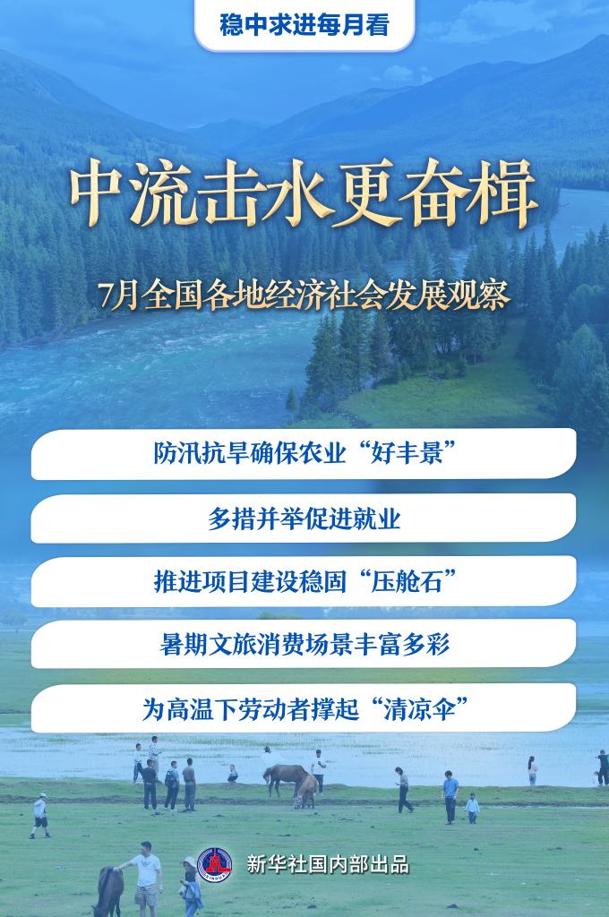 7月是下半年經(jīng)濟(jì)運(yùn)行開(kāi)局的關(guān)鍵時(shí)段。防汛抗旱應(yīng)對(duì)極端天氣挑戰(zhàn),促就業(yè)推出新舉措,重大項(xiàng)目壓茬推進(jìn)……行至年中,各地凝聚力量,奮楫前進(jìn),不斷增進(jìn)民生福祉,更好地推動(dòng)高質(zhì)量發(fā)展。
