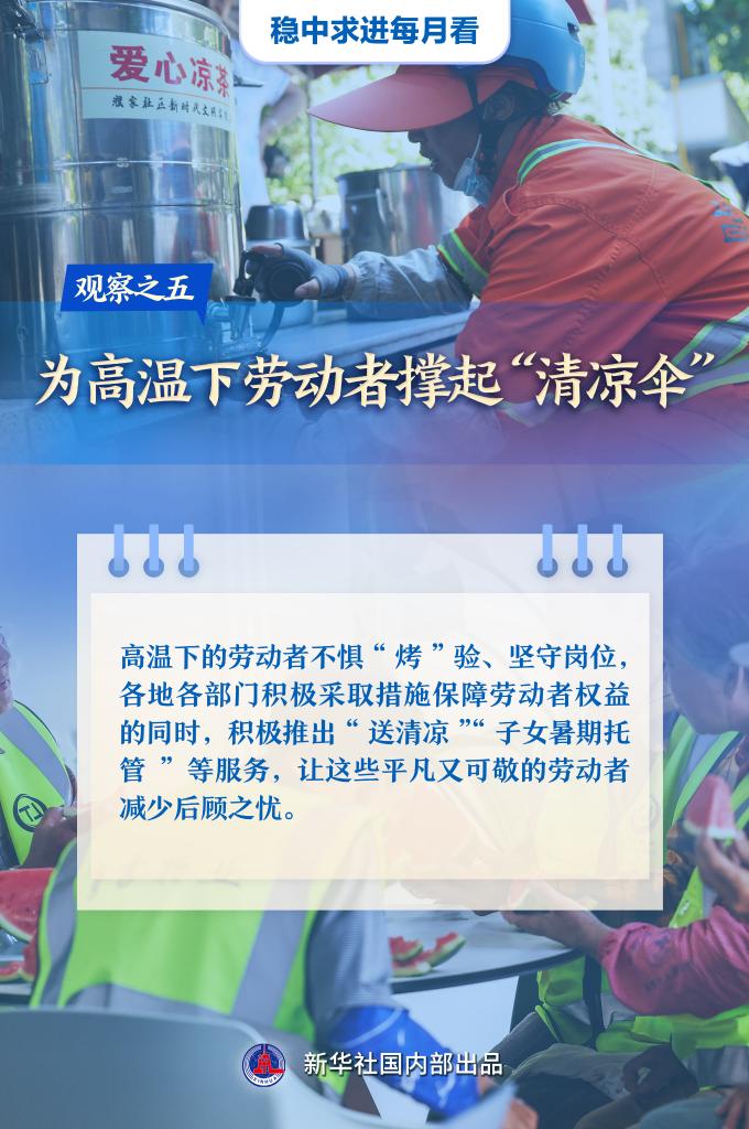 【記者觀察】高溫下的勞動(dòng)者不懼“烤”驗(yàn)、堅(jiān)守崗位,各地各部門(mén)積極采取措施保障勞動(dòng)者權(quán)益的同時(shí),積極推出“送清涼”“子女暑期托管”等服務(wù),讓這些平凡又可敬的勞動(dòng)者減少后顧之憂。