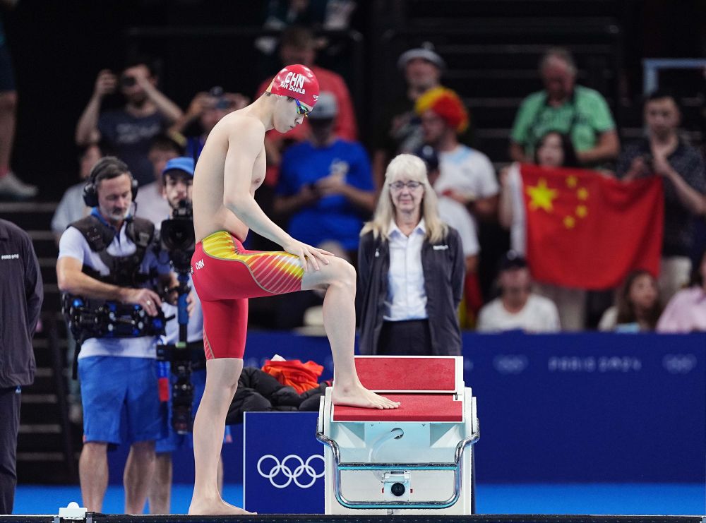 ↑中國選手潘展樂在比賽前。