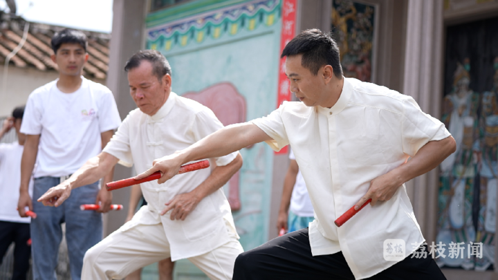 和村里許多家庭一樣,對英歌的喜愛在陳揚波家里代代相傳,他的爺爺陳才斗曾跟隨廣東省歌舞團,參加了1953年在北京的演出?!皠e人追星,我就追英歌?!标悡P波從小便癡迷于英歌激昂的節(jié)奏和矯健的身姿,夢想著有一天能成為英歌隊的一員。他迄今記得,兒時的大年初一,每當英歌鼓點響起,自己便會滿心歡喜地一路追隨在隊伍之后,縱情吶喊。到了寒暑假,他則會約上小伙伴,一起反復(fù)播放著VCD中的動作,時而慢放,時而暫停,接著把掃帚折成兩段,以柄為槌,歡然起舞。