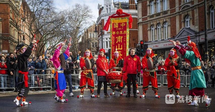 當?shù)貢r間 2024 年 2 月 11 日,陳來發(fā)教練率領(lǐng)廣東普寧南山英歌隊的近 20 名舞者現(xiàn)身英國倫敦,揭開了當?shù)匦麓簯c典的帷幕,這也是普寧英歌首次出海。與此同時,千里之外的普寧市內(nèi)另有一支南山英歌隊伍正穿梭于街巷,為市民驅(qū)邪扶正,帶隊者之一正是陳揚波。