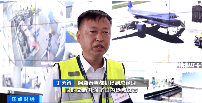 阿勒泰雪都機場副總經(jīng)理 丁勇智:原有的航線大部分進行了加密,同時又新開通了國內(nèi)熱點城市直飛阿勒泰的航線,選擇性靈活度更高了,促使今年來的游客更多了,與去年相比增長了35%左右。