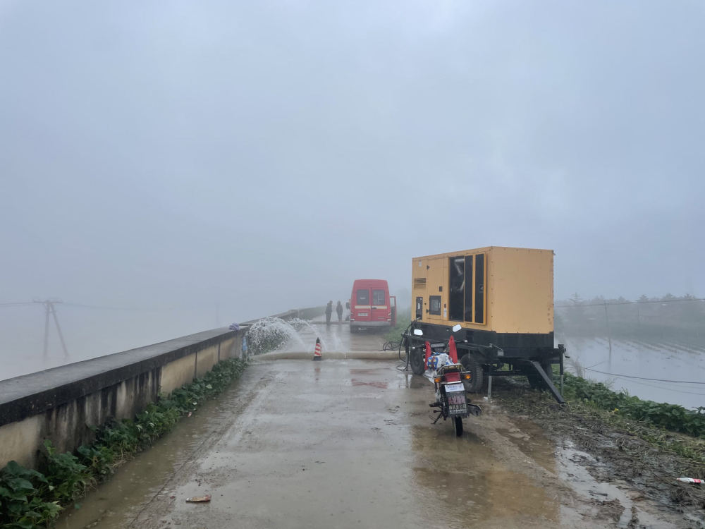 在望江村的防洪堤壩上,一臺(tái)抽水泵正在工作。新華社記者武江民 攝