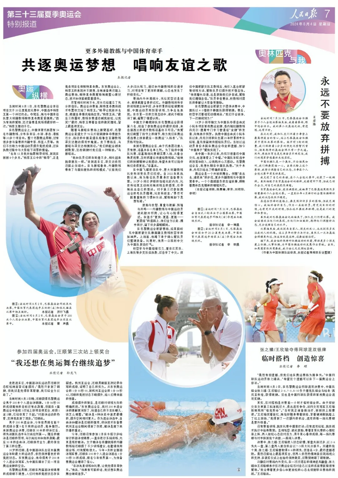 在巴黎奧運(yùn)會(huì)上,中國(guó)體育代表團(tuán)有34名外籍教練,分布在田徑、水球、拳擊、滑板等20多個(gè)項(xiàng)目中。整個(gè)巴黎奧運(yùn)周期,還有很多參與備賽的外籍專家、科醫(yī)人員等。他們不僅助力中國(guó)運(yùn)動(dòng)員提升競(jìng)技成績(jī),還在執(zhí)教過(guò)程中與大家結(jié)下深厚的情誼。