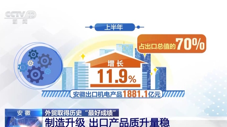 今年上半年,安徽的貨物貿(mào)易進(jìn)出口總值3967.8億元,同比增長7.4%,創(chuàng)下歷史同期最好水平。安徽外貿(mào)取得歷史“最好成績”,背后的動(dòng)力是什么?