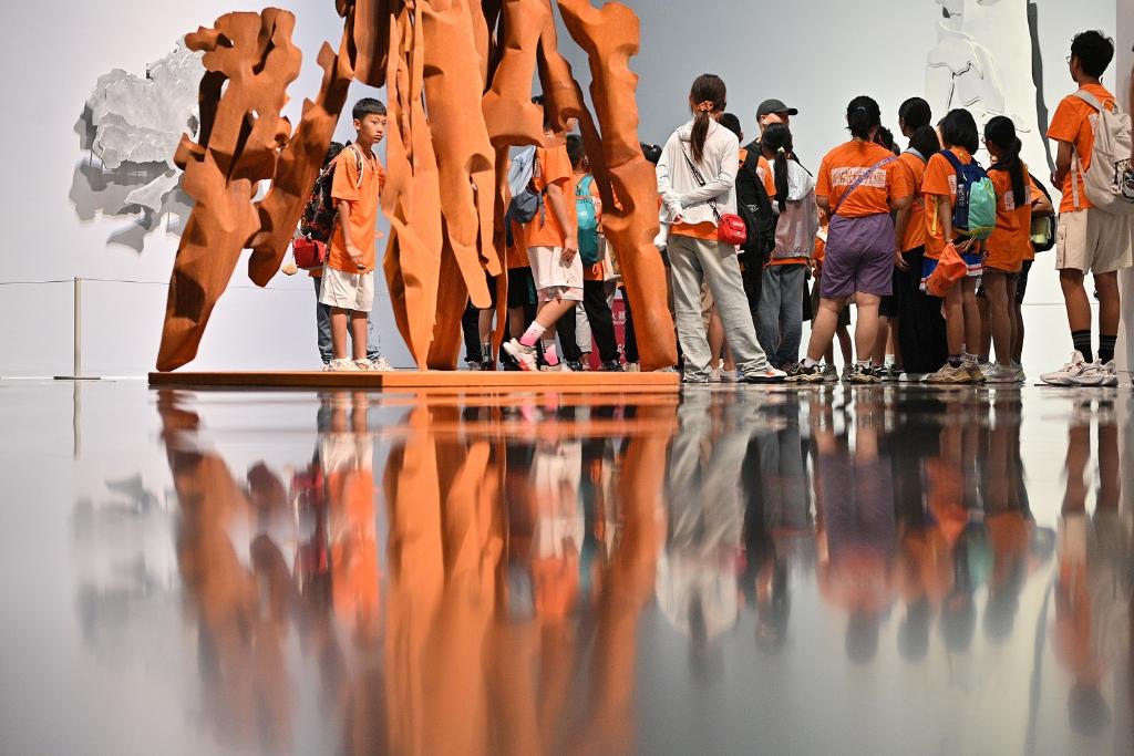 7月24日,參加研學(xué)的學(xué)生在清華大學(xué)藝術(shù)博物館參觀。新華社記者 尹棟遜 攝