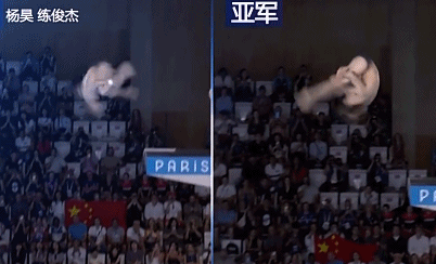 我們把動(dòng)作放慢,對(duì)冠亞軍選手動(dòng)作作對(duì)比,不難發(fā)現(xiàn),在空中轉(zhuǎn)體翻騰動(dòng)作和入水水花上,中國(guó)的兩位選手明顯更勝一籌。