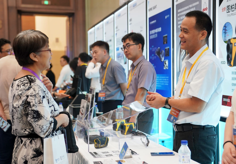 在第七屆進(jìn)博會(huì)技術(shù)裝備、汽車展區(qū)展前供需對(duì)接會(huì)現(xiàn)場(chǎng),展商工作人員(右)向采購(gòu)商介紹企業(yè)產(chǎn)品(2024年8月8日攝)?! ⌒氯A社發(fā)(陳浩明 攝)