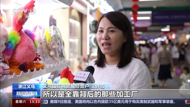 義烏國際商貿(mào)城經(jīng)營戶 王許雪:像我們背后都有100來家工廠給我們供應(yīng),所以是全靠背后的那些加工廠來支持我們,全國各地的都有。