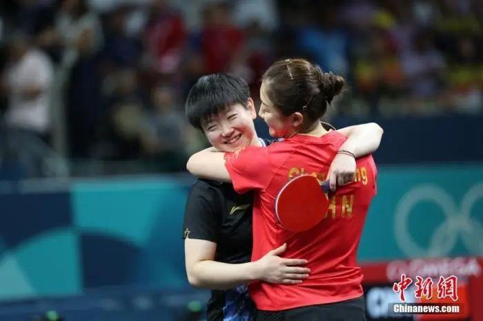 資料圖:王欣瑜和張之臻在混雙決賽中擁抱。中新社記者 富田 攝