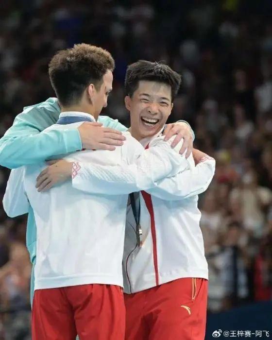 男子蹦床決賽,中國選手王梓賽和嚴浪宇分別獲得銀牌和銅牌。也許是因為遺憾,第一次參加奧運會的王梓賽留下了眼淚。來自白俄羅斯的金牌得主伊萬-利特維諾維奇穿越大半個場館,來到王梓賽身邊,給了他一個大大的擁抱。