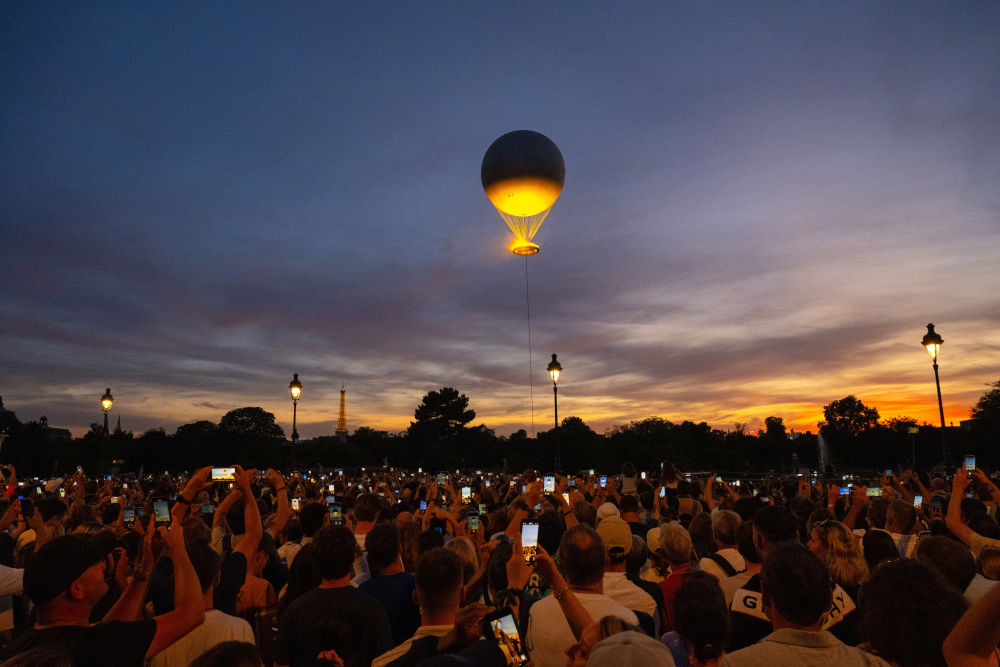 歷史建筑與現(xiàn)代藝術(shù)的融合彰顯法式浪漫。埃菲爾鐵塔上的燈光秀劃破夜空。特羅卡德羅廣場上,神秘人將火炬交給法國傳奇球星齊達(dá)內(nèi),不久后,杜樂麗花園內(nèi)的主火炬——一個直徑7米的火焰環(huán),頂部是一個高30米、直徑22米的系留氣球,被“點燃”。