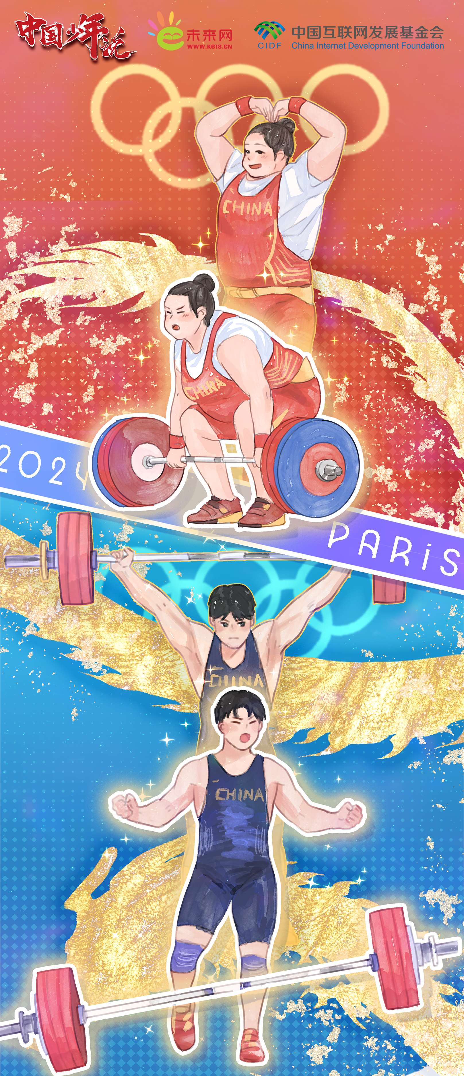 每一次杠鈴的舉起,都是對體能極限的挑戰(zhàn);每一次重量的征服,都是對自我潛能的突破。李雯雯分享訓(xùn)練日常時,經(jīng)常使用一個叫“雯扎雯打”的話題詞,這也正是她一路走來,最真實而生動的寫照。從在舉重亞錦賽刷新女子87公斤以上級三項世界紀錄,到在東京奧運會奪冠并打破三項奧運紀錄,再到在巴黎奧運會上克服傷病造成的心理和身體上的障礙成功衛(wèi)冕,展示王者歸來的風(fēng)范,擁有碾壓級實力的她,一次次地將責(zé)任扛在了肩上,也將國家榮譽穩(wěn)穩(wěn)地舉了起來。同樣,劉煥華在3年內(nèi)橫跨5個級別完成升級,并最終在巴黎奧運會上“舉”起了這枚極具分量的金牌背后,是他克服了不斷增重的痛苦、舉重訓(xùn)練的枯燥,更以“拼命三郎”的毅力和決心進行自我錘煉。巴黎奧運會之前,中國男舉還沒有100公斤以上級別的奧運金牌,第一次站上奧運舞臺的他不僅堅實地邁出了這一步,更以卓越的表現(xiàn)向世界宣告了中國舉重不可估量的潛力。