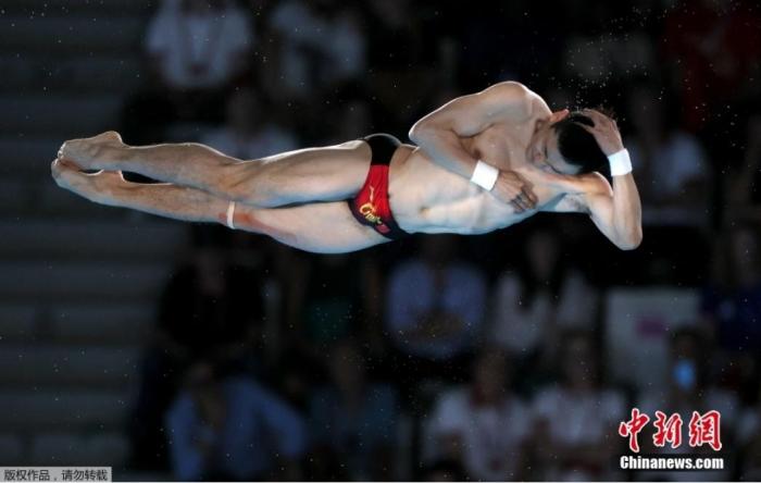 當?shù)貢r間8月10日,巴黎奧運會跳水男子10米臺決賽,四戰(zhàn)奧運的中國老將曹緣以547.50分成功衛(wèi)冕,拿下本屆奧運會跳水項目最后一枚金牌,幫助中國跳水隊實現(xiàn)單屆奧運會金牌包攬。圖為曹緣在比賽中。