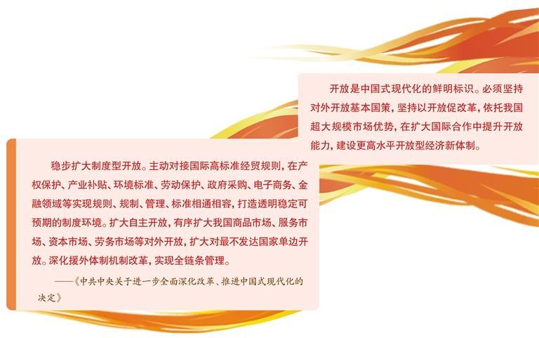 《決定》提出“穩(wěn)步擴大制度型開放”,要求主動對接國際高標(biāo)準(zhǔn)經(jīng)貿(mào)規(guī)則?!稕Q定》作出的一系列重要部署影響廣泛、意義深遠。