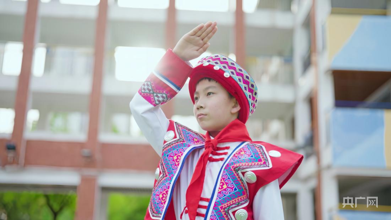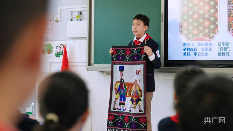 周彥博的家鄉(xiāng)位于重慶市酉陽土家族苗族自治縣。逢年過節(jié),他總會(huì)跟隨爸爸媽媽回鄉(xiāng)看望親人。不同民族、不同文化碰撞的魅力讓周彥博深受感觸?;氐綄W(xué)校,他利用課余時(shí)間,身著特色家鄉(xiāng)服飾,與同學(xué)分享自己回鄉(xiāng)的見聞,講述民族團(tuán)結(jié)的故事。