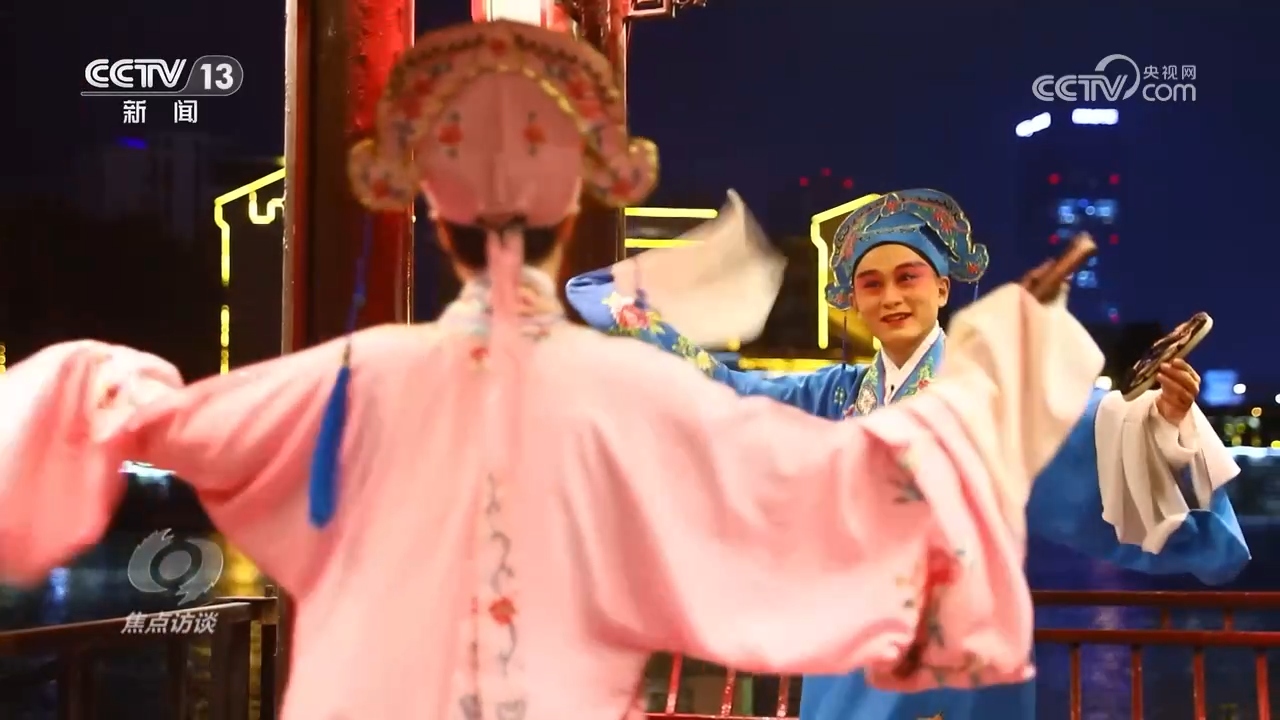 運河邊的演出不僅給市民以美的享受,也讓淮海戲這樣的傳統(tǒng)文化穿越時空,成為年輕人所喜聞樂見的一種新時尚,喚起對傳統(tǒng)文化的認同。18歲的孫玥從小是河畔戲臺的忠實觀眾,如今她也開始系統(tǒng)地學(xué)習(xí)淮海戲,在她看來,在河畔的露天戲臺看戲更能體會戲曲中的韻味。