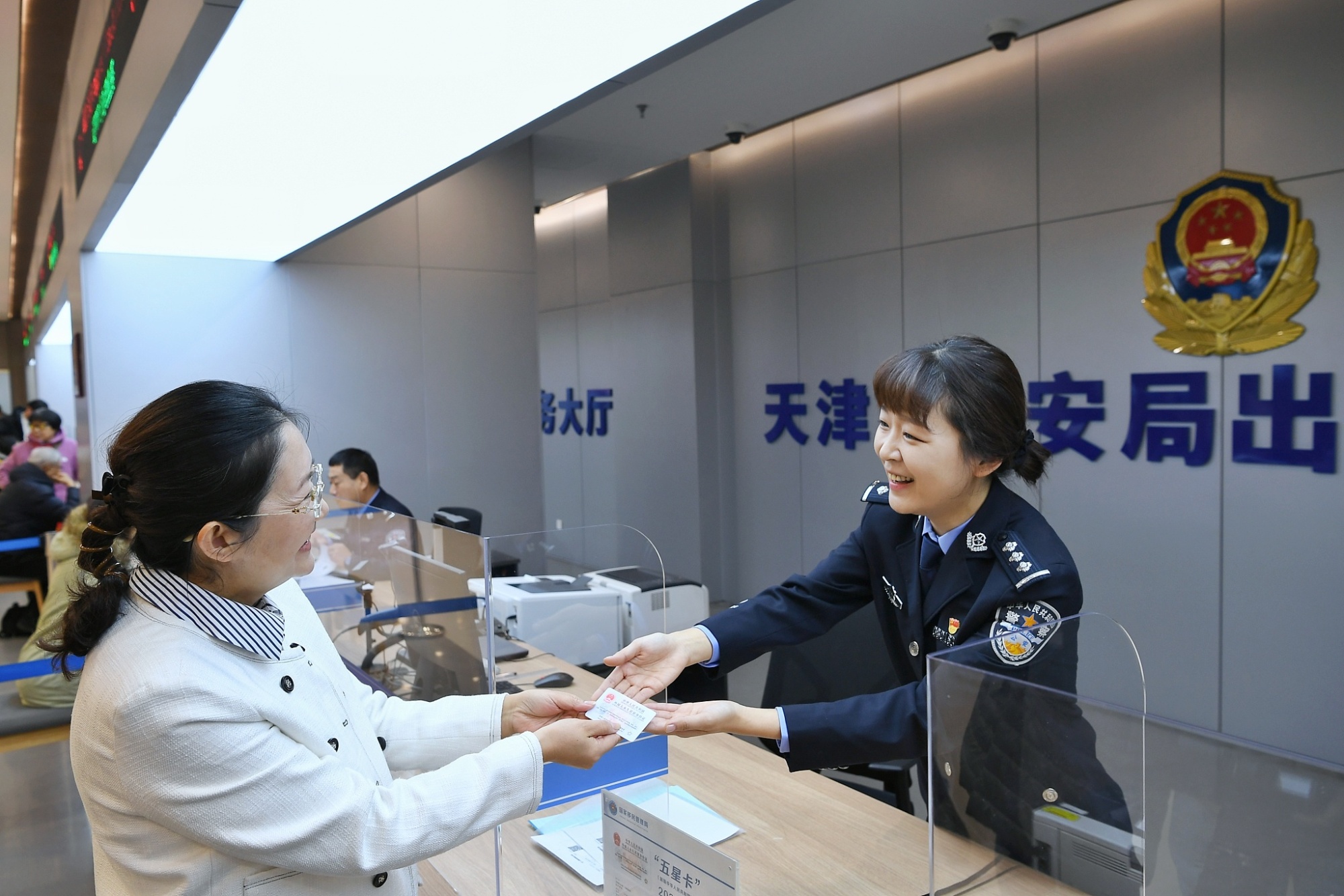 2023年12月1日,在華永居人員在天津市公安局出入境管理局領取“五星卡”