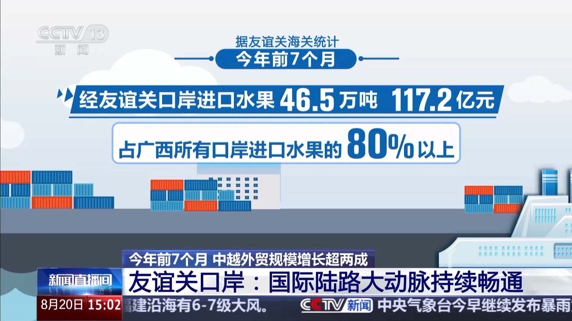 據(jù)友誼關(guān)海關(guān)統(tǒng)計,今年前7個月,經(jīng)友誼關(guān)口岸進口水果46.5萬噸、117.2億元,占廣西所有口岸進口水果的80%以上。