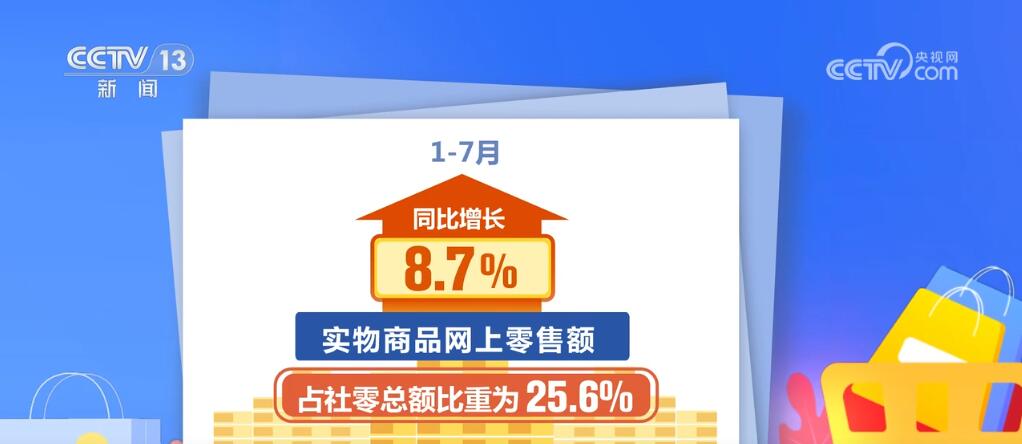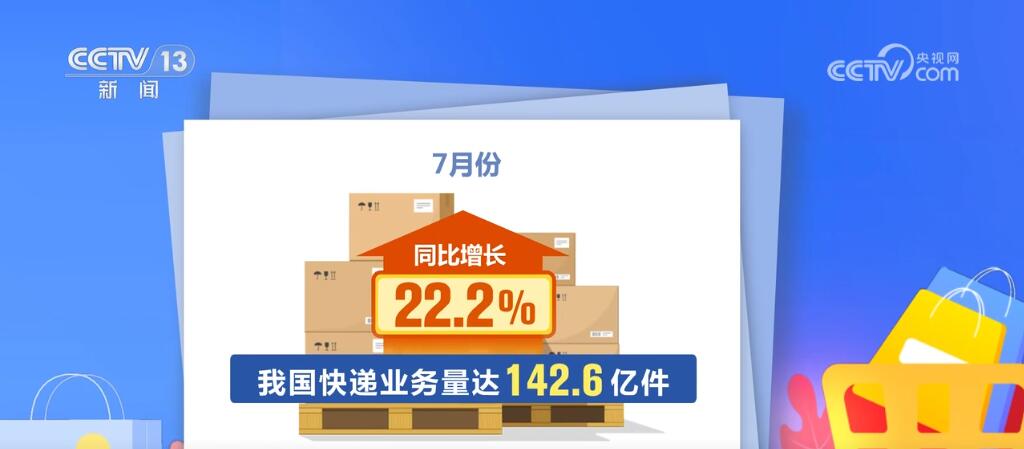 同時(shí),線上消費(fèi)增勢(shì)較好。1—7月,實(shí)物商品網(wǎng)上零售額同比增長8.7%,占社零總額比重為25.6%。7月份,我國快遞業(yè)務(wù)量達(dá)142.6億件,同比增長22.2%。