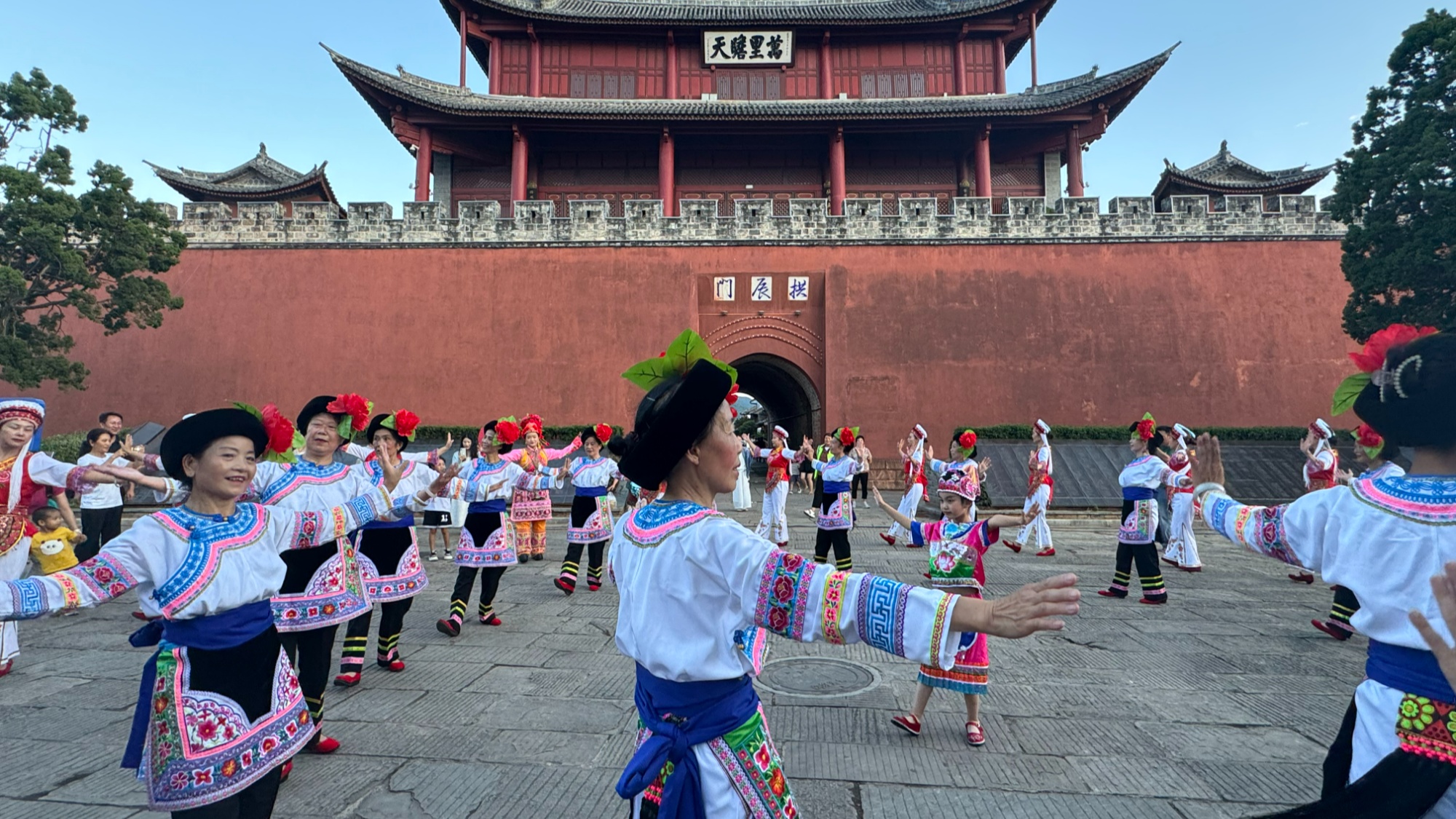 在巍山古城拱辰樓廣場,經(jīng)常有“法治匯演”在這里上演。昨天,巍山的幾只民族文藝隊表演了《白族霸王鞭》舞蹈、《平安巍山》快板、《是你》聲樂、《阿克哩哈》舞蹈等節(jié)目,巧妙地將普法內容融入到其中,以歌舞傳遞法治的力量,群眾載歌載舞,現(xiàn)場氛圍濃烈。