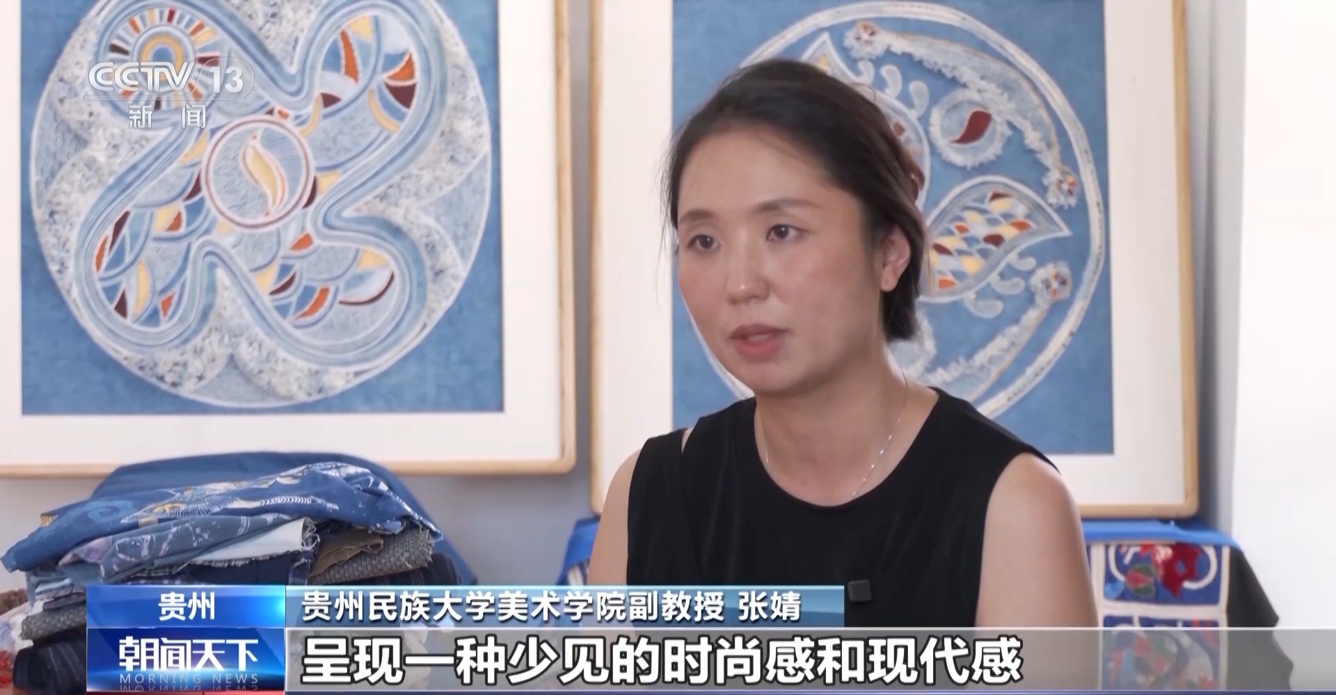 貴州民族大學美術學院副教授 張婧:在它的色調和質感的對撞和對比下,使得劍河錫繡呈現(xiàn)一種少見的時尚感和現(xiàn)代感。