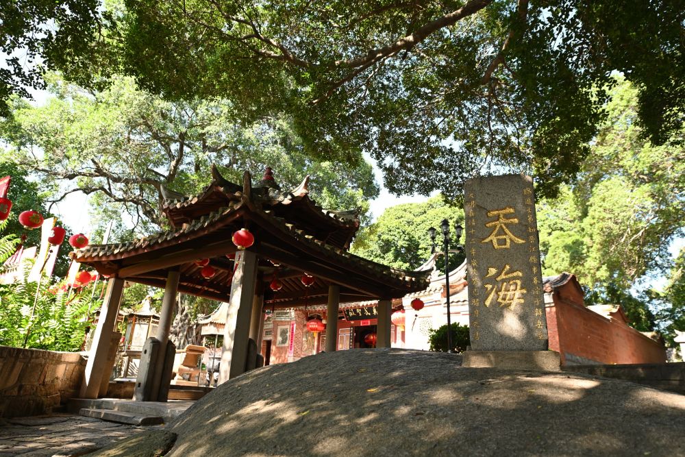 泉州市豐澤區(qū)真武廟前,一方巨石拱出地面、宛如龜背,上方石碑篆刻的“吞?!眱蓚€大字,彰顯了泉州人征服大海的豪情。