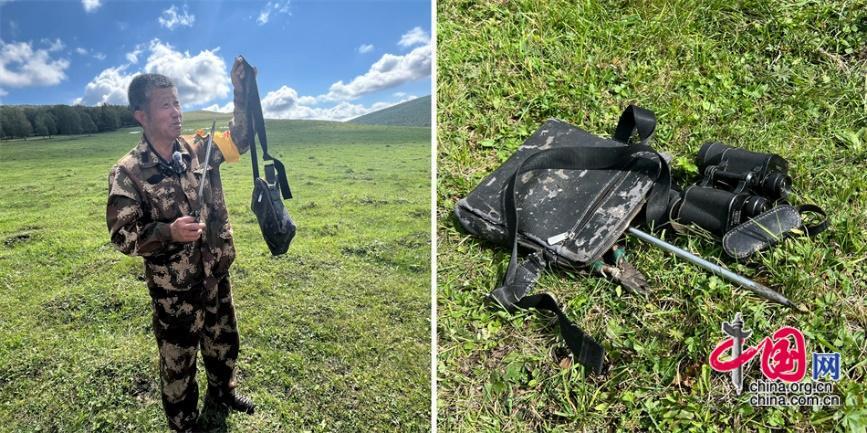 王玉發(fā)放牧巡邊時帶的“裝備包”,里面裝著望遠(yuǎn)鏡、錐子、鉗子。中國網(wǎng)記者 吳佳潼 攝