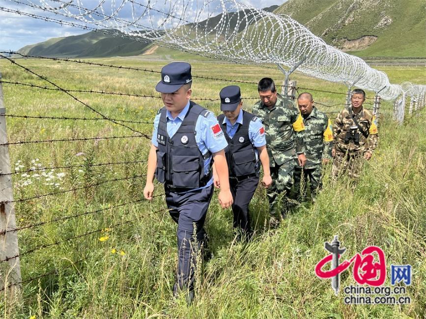 王玉發(fā)(最后一位)與邊境警察和其他護(hù)邊員一同巡邊。中國網(wǎng)記者 吳佳潼 攝
