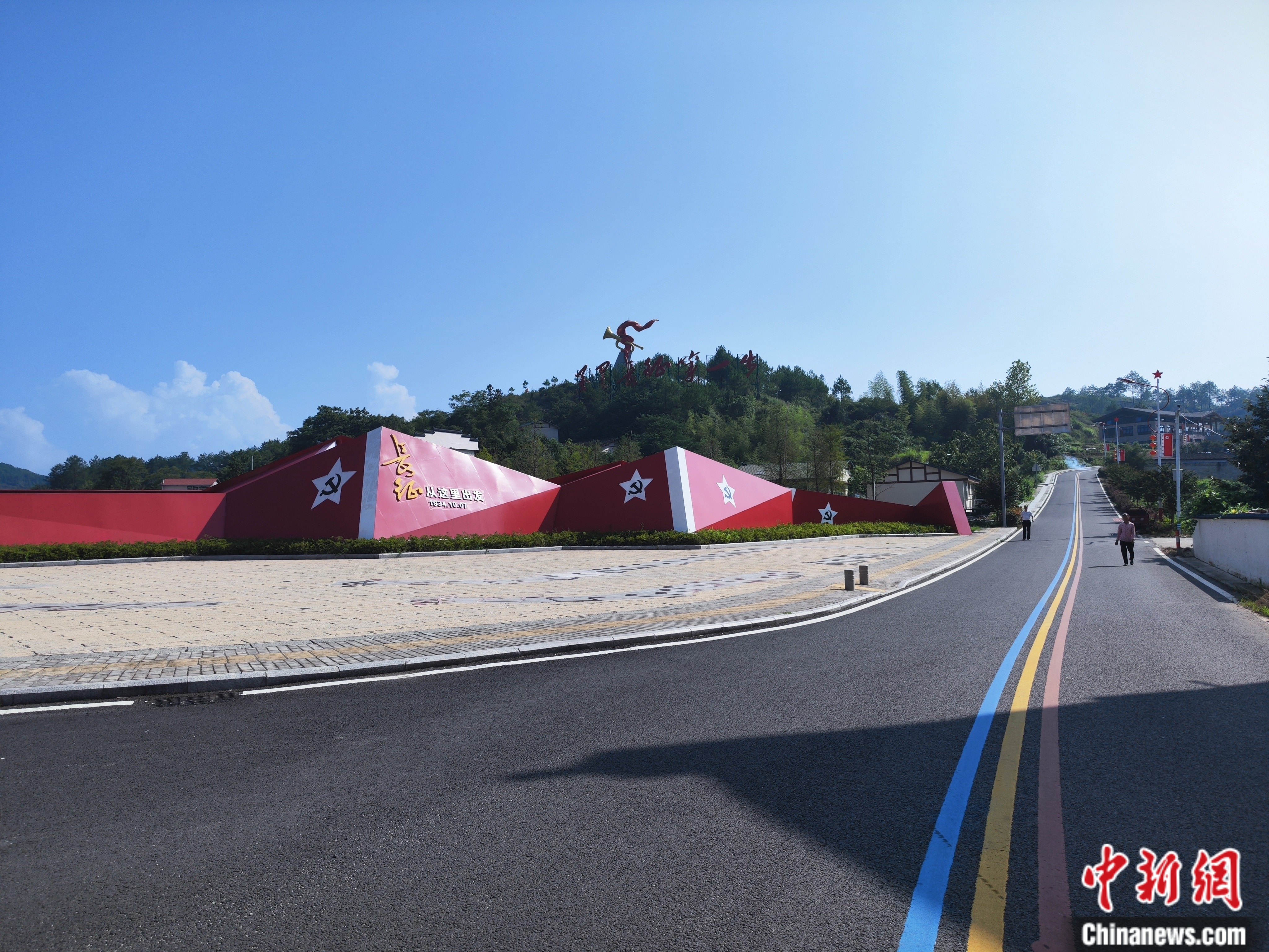 而現(xiàn)在,指指對(duì)面山頭上尤為醒目的軍號(hào)雕塑,當(dāng)?shù)卮迕裥Σ[瞇地對(duì)記者說:“游客從那邊山頂上下來,沿著這條路去往紅軍街、紅軍井、五通廟,很熱鬧咧!”