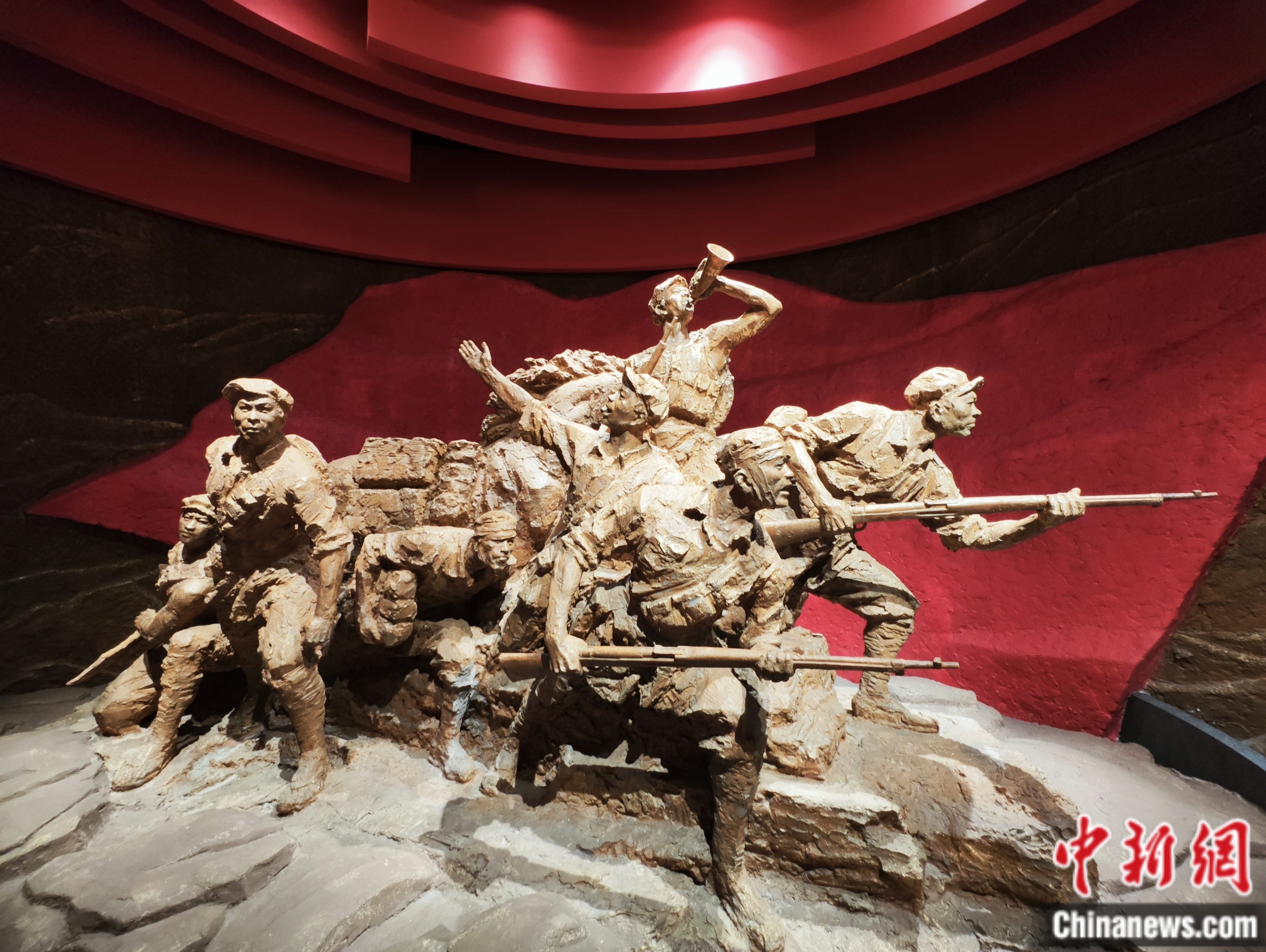 寧化縣長(zhǎng)征教育基地內(nèi),一組戰(zhàn)斗中的紅軍雕像。劉越 攝