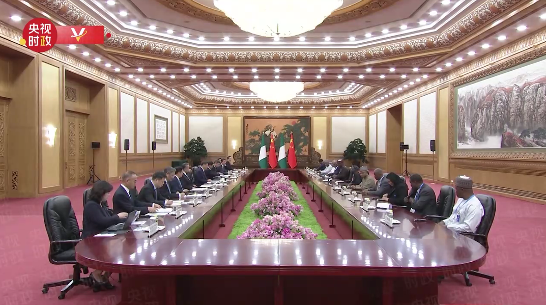 習(xí)近平指出,很高興結(jié)識總統(tǒng)先生,歡迎你來華出席中非合作論壇峰會并對中國進行國事訪問。尼日利亞是具有重要影響的非洲大國,擁有巨大人口規(guī)模和發(fā)展?jié)摿?。相信在你的領(lǐng)導(dǎo)下,尼日利亞國家發(fā)展改革事業(yè)將取得更大成就。
